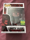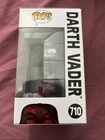 The product is a Funko Pop! Vinyl figure of Darth Vader from the Star Wars collection. This specific version was released as an exclusive for San Diego Comic Con, making it a highly sought-after collectible. The figure is part of the Pop! Vinyl series, featuring a design of Zeus in a sci-fi movie theme. This Darth Vader figure is numbered 710 and is made of vinyl material. Additionally, it is a vaulted piece, adding to its rarity and value among Star Wars fans and collectors.