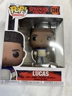 The product is a Funko Pop vinyl figure featuring Lucas Sinclair from the TV show "Stranger Things." This collectible figure is part of the Pop! Vinyl product line and comes in box number 1241. As a fan favorite character from the popular series, Lucas Sinclair is depicted in vinyl form with attention to detail, making it a must-have for fans of "Stranger Things" and collectors of Funko Pop figures.