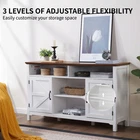 Home Payment Shipping Return Policy About Us Contact Us Feedback Title Other Standing Desk Desk Riser & Desk Converters Desk Bike Ergonomic Office Chair Fitness Add rustic farmhouse charm with FunniHomi 58" Buffet Sideboard Cabinet. Antique white finish with walnut accents and barn doors offers classic style. Features 2 open cubbies and 2 side cabinets with adjustable shelves for versatile storage. Durable P2 MDF construction with a sturdy tabletop. Easy assembly with US-based customer support. Perfect as a TV stand, dining buffet, coffee bar, or entryway organizer. Timeless Farmhouse Charm – Rustic antique white finish with walnut wood grain accents and iron-tone hardware; hinged barn doors add classic farmhouse style to your home. Spacious Storage – Features 2 open cubbies and 2 side cabinets with adjustable shelves, perfect for kitchen essentials, coffee bar supplies, or decorative items. Versatile & Multi-Functional – Use as a TV stand, dining room buffet, coffee bar, or entryway cabinet; ideal for organizing shoes, bags, and accessories. Durable & Sturdy Build – Made from high-quality P2 MDF boards with a stable tabletop; strong frame ensures long-lasting reliability. Easy Assembly – Clear instructions and labeled parts make assembly quick. Specification: Color: White Material: MDF+Metal Item Width: 57.99'' Item Height: 33.93'' Item Depth: 15.74'' Style: Farmhouse Door Style: Sliding Barn Doors