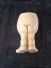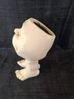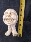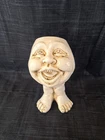 Cute, slightly creepy, pot stands 6" tall with a 2" opening. Used one, no damage. Made of resin