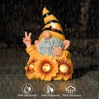 High-quality and Durable - This gnome outdoor statue is constructed of premium resin material, will suit perfectly for your beautiful yard and Lawn. Hand molded and painted with extreme detail to make him so funny and adorable! High-quality and Durable - This gnome outdoor statue is constructed of premium resin material, will suit perfectly for your beautiful yard and Lawn. Hand molded and painted with extreme detail to make him so funny and adorable! Adorable Design - This cute gnome statue is smile with sunflower to welcome your guests, and make your family and friends happy with your funny lawn decorations. It's an ideal gift option for your family and friends for holiday and birthday and all other occasions. Dimensions: 6.3”L x 5.1”W x 8.6”H Waterproof & Sun-Resistant - This outdoor gnome statue is printed with outdoor grade paint as the protective coating, no worry about fading even in strong sunlight or under heavy rain, withstand any harsh outdoor conditions. Easy to Use - The built-in light sensor controls led lights on/off automatically. Simply press the back button and leave it in the 'on’ position in the daytime. The solar panel will charge within 5-8 hours during the day and light up automatically at night for 8-10 hours. Gifts for Family or Friends - Perfect for pet lovers and garden enthusiasts, this enchanting ornament is a delightful addition to your yard decor or a unique gift for loved ones.