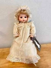 17" long - Italian Furga Made in Italy; late 50's, early 60's Marked on back of neck Original hand tag and box A rare doll in this country; sold in Europe * Poor storage has caused mold spots. * I treated the mold with chlorine and * Sprayed the doll with vinegar solution * Due to the music box, I could not wash the body. * Doll is odor free * Clothes are without spot, stain or odor Box is faded; lid has a torn corner Look at that BEAUTIFUL FACE Deep blue sleep eyes PLAYS Brahm's Lullaby while Head moves Bambola: a doll that looks real Vinyl head and arms; soft body and legs Rooted blonde hair She has sleepy blue eyes with full lashes Clothes are freshly washed Clothes are original, clean and complete Lovely Italian lace and nylon Her fingers curl She is very sweet to hold Look close, ask questions Thank you