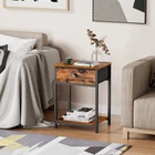This end table is a game-changer! The rustic brown and black design adds a cool industrial vibe to any room, and the fabric drawer plus two open shelves give me so much storage space. Assembly was super easy, and it feels really sturdy—no wobbling at all. Love that the adjustable feet keep it level on my uneven floor. Perfect for holding my books, plants, and bedside essentials without taking up too much space. Highly recommend!