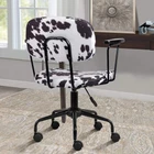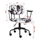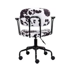 GIA Barnyard Holstein Cow Pattern Home Office Task Chair with Arms, Metal, Black and White Product Details Color: Black and White Style: With Arms Pattern Name: Holstein Brand: GIA MPN: OC09-BKCOW-A_VC UPC: 810043768078 EAN: 0810043768078 Brand: GIA Color: Black and White Product Dimensions: 21.6"D x 38.5"W x 38.5"H Back Style: Cushion Back Special Feature: Adjustable Height, Arm Rest, Rolling Brand: GIA Color: Black and White Product Dimensions: 21.6"D x 38.5"W x 38.5"H Back Style: Cushion Back Special Feature: Adjustable Height, Arm Rest, Rolling Product Care Instructions: Dry Clean Unit Count: 1.0 Count Recommended Uses For Product: Office, Drafting, Reading, Relaxing, Dining Maximum Weight Recommendation: 300 Pounds Style: With Arms Pattern: Holstein Room Type: Office, Classroom, Home Office, Library, Dining Room Age Range (Description): Adult Included Components: Chair, Hardware, Instructions, and Tools Theme: Animal-themed Shape: Square Model Name: Barnyard Holstein Cow Pattern Arm Style: With arms Surface Recommendation: Hard Floor Furniture base movement: Swivel Indoor/Outdoor Usage: Indoor Furniture Finish: Polyester Seat Depth: 23.6 inches Fill Material: Foam Leg Style: Solid Wood with Black Matte Finish Tilting: No Is Customizable: No Is Electric: No Number of Height Positions: 3 UPC: 810043768078 Manufacturer: GIA Item Weight: 20.9 pounds Country of Origin: China Item model number: OC09-BKCOW-A_VC Refill: Foam Form Factor: Upholstered Assembly required: Yes Number of pieces: 1 Warranty Description: 1 year manufacturer's warranty. Batteries required: No Comfortable executive chair with a Holstein Cow pattern upholstered in polyester with armrests Chic and comfortable padded seat that not only gets you through the day but does it in style 360-Degree swivel; pneumatic seat height adjustment; smooth rolling casters Assembly Tips:Before you begin to assemble your chair, please remove the black safety rubber hose that is on the air cylinder. Dimensions are 31.5 to 36.2 inches in Height; the seat width is 23.6 inches; the seat depth is 19.29 inches; The seat backrest has a width of 17 inches Getting through spreadsheets, emails, and video calls may be boring, so you may as well do it in style. GIA's line of animal print office chairs provide comfort and support and look good while doing it. The Barnyard collection features Cow Patterns, like Holstein (Back and White) and Ayrshire (Brown and White). GIA's Safari collection features Zebra or Leopard print. All upholstery colors/styles are 100% polyester. Each home office chair comes with or without arms depending on your taste and needs (each sold separately). Packed with features like adjustable seat height, 360-degree swivel, and smooth rolling caster wheels, the GIA home office task chair is ideal for your work from home setup, business office, or any room that needs a splash of pizazz.