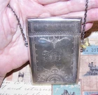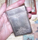 Civil War Era Gorham Sterling Silver Card Case w/Original Box Retailed by George Sharp, Atlanta Georgia When one thinks of George Sharp (Danville, KY, 1857- late 1860s, Atlanta, GA from 1871) as a Silversmith, one thinks of the unusual ball-end flatware his shop produced. But forevermore, I will associate George Sharp with this extremely rare find. Manufactured by Gorham for Mr Sharp's retail establishment in Atlanta Georgia, may I offer this Sterling Silver (hallmarked as pictured) card case created towards the end of the American Civil War. In a Victorian Aesthetic design with engraved initials of TSS or JSS. Size is 3-9/16" x 2-3/16"; weight is 55 grams (1.5 ounces). Chain length is about 15". While the case shows no dents or dings or repairs, there is what I call a "light impression" to the front and to the back, maybe 1 impression that is a sharp line and 2 that are light. The marks probably don't show in the photos as they are so light. What is so unusual about this offering is that the card case still resides in its original leather covered wooden presentation box WITH all the jewelers notations on the bottom of the box. The inside of the box bears George Sharp Jr's imprinted name in gold lettering; the inside bottom of the box shows discoloration and maybe a touch of shattering to the interior silk. Lid snaps shut as it should. The bottom of the box reads, if I am interpreting correctly - first tag "$21 Cwod Case, S.F. Esq. 1/10" then another tag that reads "No. 18.00." Gorham cases are expensive depending on their design, even more so if the original presentation case is around and even MORE so, if the retailer is a one that made a name for himself albeit for a short time. I guess that's why his offerings are so scarce. A wonderful bit of history here and a rare find I think! 5068Robin/BX Postage quoted for this item on its own INCLUDES insurance. * * * BUY IT NOW ! ******************************** TERMS ITEM CONDITION I have been doing EBAY for 21 years now and I know what I am doing when it comes to selling. I describe my items accurately, have multiple pictures on each of my listings so a "surprise" upon receipt is unlikely. However, if something is amiss, I will remedy the situation as quickly as possible. RETURNS/REFUNDS * Any return is to be made within 3 days after Buyer's receipt of item. Please notify ME (not EBAY) asap if you intend on making a return. PAYMENT METHODS ACCEPTED * PayPal - Any refund made will be less the amount Paypal keeps as a transaction fee. (New as of 11/24/19). SALES TAX * EBAY now collects sales tax on most states - this will be automatically added to your invoice by EBAY. SHIPPING USA As mentioned in the shipping area. COMBINED SHIPPING Yes, I will combine shipping for the best price - just do not pay and let me correct the invoice. If you pay, I can no longer refund the overage. PACKAGING I package my items very well for transit so please please do not worry - your package will arrive intact. My home is smoke and pet free! OVERSEAS SHIPPING This will be mentioned in the appropriate area. RIGHT TO SELL * I sell on other sites so if you try to find my listing and can't, it means it has sold. DELIVERY * I process mail 2 to 3 times a week so once payment is received, Buyer's package will ship ASAP - usually 1-2 days after payment is received. If there is a delay, I will let BUYER know. FINAL NOTE * Again, I will process any refund rather than EBAY. If this rule is not to your liking, then please do not purchase the item. Thanks for visiting!