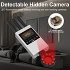 Product Description Features: 1. Digital control high sensitivity professional wireless detection device, used to detect 300-2700MHz. 2. Easy to use, with two alarm methods: sound vibration and LED indicator light, accurate and reliable. 3. This device can detect 2G, 3G, 4G and wireless devices, 1.2G/2.4G&5.8G wireless cameras, and accurately locate GPS. 4. It can detect whether private addresses such as rooms, bedrooms, meeting rooms, fitting rooms, hotels, cars, entertainment venues, etc. have been installed with listening devices or secretly filmed with mini cameras, and whether mobile phone cards are inserted for eavesdropping Micro camera with storage card, mobile undercover software, GPS car tracker. 5. Compact body, easy to carry. 6. In complex environments, it can effectively filter out clutter interference from signals and accurately capture stable signal sources for analysis. By adjusting sensitivity with buttons, the direction and distance of the signal source can be determined. 7. Simple design, full button operation, separate display of signal strength and sensitivity, allowing users to quickly get started. Product details: Frequency range: 300MHz-2700MHz Detecting dynamic range:> 73db Indication method: 10 level LED illuminated indication Variable tone indication Power supply: Built in 3.7V 1000mAh lithium battery Working current: 60mA Continuous work: 8-12 hours Detection sensitivity:< 0.03mw Detection range: 5.8G: 15 square meters (standard 10MW) 2.4G: 10 square meters (standard 10MW) 1.2G: 10 square meters (standard 10MW) Mobile signal 2G/3G/4G: 15 square meters Material: Metal This product supports USB interface camera lens scanning detector, 10 infrared lights super bright detection, covering a long distance, and the lens reflection point is clear and visible, making it easy to see the pinhole lens reflection point 5 meters away The camera lens detector can be plugged into any portable power bank, powered by a USB port on a power bank, plug and play, and quickly used The camera lens scanner supports connecting to our company's detector G338 G368 G638 G738 G768 RD6800 RD6800W RD6800M RD6800MW for plug and play and quick use