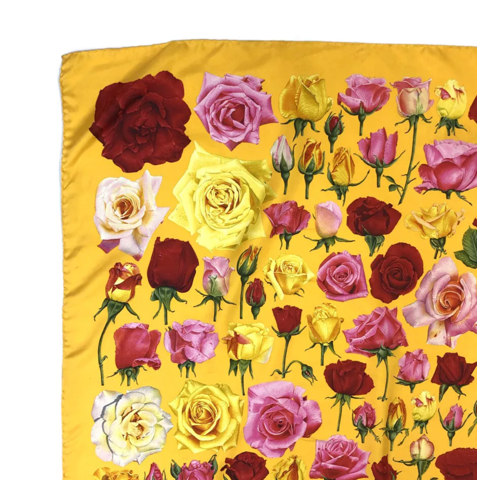 GUCCI model: Rose Motif material: 100% silk color: orange dimensions: 34" x 34" (86cm x 86cm) made in: italy vintage new old stock, gift box included. no signs of use gbstock# 0000086