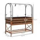 Features: - Greenhouse cover keeps your planting space warm and from mild rain - A roll-up door for easy plant management - This large planter provides lots of space for plants, flowers, and vegetables - A storage shelf to place garden tools and potted plants - A raised design is ergonomic - Non-woven fabric in the planting box - Made of strong colored galvanized steel for a water-safe build - Assembly required Specification: - Color: Dark Brown - Materials: Metal, Plastic - Overall Dimensions: 41.75" L x 21.25" W x 53.25" H - Planter Size: 41.75" L x 21.25" W x 30" H - Cover Size: 41.75" L x 21.25" W x 23.25" H - Interior Planting Size: 41" L x 20.5" W x 10.25" H - Shelf Size: 40.25" L x 20.75" W - Door Size: 35.5" W x 31.5" H - Weight Capacity: 440 lbs. (Overall), 22 lbs. (Shelf) Package Includes: - 1 x Raised Garden Bed - 1 x Plastic Cover - 1 x Manual
