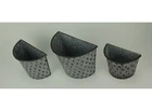 NOTE - DUE TO A MISSING HOOK ON THE LARGE PLANTER, this item is being sold at a reduced price (DAMAGE MAY VARY PER PRODUCT AVAILABLE). Please see last photo for damages/defects. Made of Metal in a Distressed Galvanized Finish with Darkened Edges and a Woven Lattice-Look Front Simply Hang From a Single Nail, Screw or Decorative Wall Hook From the Built-In Keyhole Mounting Hangers Hang On a Living Room Wall or Display On a Garden Fence or Outdoor Patio Wall and Give Your Decor a Touch of Vintage Farmhouse Flair Largest - 11.25 inch Long, 8.5 inch Deep, 6.25 inch Wide / Smallest - 8 inch Long, 6.25 inch Deep, 4.5 inch Wide Our eBay Store About Us Add to Favorite Sellers Galvanized Metal Indoor Outdoor Wall Mount Basket Planters Lattice Look Set of 3 NOTE: DUE TO A MISSING HOOK ON THE LARGE PLANTER, this item is being sold at a reduced price (DAMAGE MAY VARY PER PRODUCT AVAILABLE). Please see last photo for damages/defects. NOTE - DUE TO A MISSING HOOK ON THE LARGE PLANTER, this item is being sold at a reduced price (DAMAGE MAY VARY PER PRODUCT AVAILABLE). Please see last photo for damages/defects. Made of Metal in a Distressed Galvanized Finish with Darkened Edges and a Woven Lattice-Look Front Simply Hang From a Single Nail, Screw or Decorative Wall Hook From the Built-In Keyhole Mounting Hangers Hang On a Living Room Wall or Display On a Garden Fence or Outdoor Patio Wall and Give Your Decor a Touch of Vintage Farmhouse Flair Largest - 11.25 inch Long, 8.5 inch Deep, 6.25 inch Wide / Smallest - 8 inch Long, 6.25 inch Deep, 4.5 inch Wide NOTE: DUE TO A MISSING HOOK ON THE LARGE PLANTER, this item is being sold at a reduced price (DAMAGE MAY VARY PER PRODUCT AVAILABLE). Please see last photo for damages/defects. Give your home a touch of vintage farmhouse flair in a modern design and bring your plants to new decorative heights with this set of wall planters. The stylish woven basket look fits in with most any of today's farmhouse and rustic inspired decor styles. They look great with trailing plants, tall grasses and colorful flowers, and if you don't have a green thumb, just arrange some silk greenery to bring a sense of nature into your indoor or outdoor living space. They are made of metal in a galvanized finish with a woven lattice-look front and darkened edges for a wonderfully weathered patina. This set of 8 inch long, 6.25 inch deep, 4.5 inch wide, 10 inch long, 7.5 inch deep, 5 inch wide and 11.25 inch long, 8.5 inch deep, 6.25 inch wide planters easily attaches to a wall or garden fence from the built-in keyhole mounting hangers on the back. Product Details Color Gray Height 8.5 Length 11.25 Weight 2.6 LB