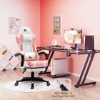 Gaming Chair, Ergonomic Video Game Chair,PU Leather Computer Chair, Pink & White