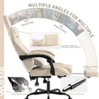 You may also like Ergonomic Wooden Rocking Kneeling Chair Home Office Support Stress Relief Indoor 99.65 USD 104.89 USD Free shipping 5% off Ergonomic High Back Mesh Office Chair W/ Adjustable Armrests & Headrest Durable 99.09 USD 104.3 USD Free shipping 5% off About this item Ergonomic design: The gaming chair comes with a headrest, a massage lumbar pillow, and a retractable footstool. It will provide you with comfortable neck support and an excellent lumbar massage to ease your fatigue. It can hold up to 330 pounds. Adjustable gamer chair: This computer chair has an adjustable seat height feature that enables you to lower or raise your seat between 17. 7 to 21. 59 inches. 90 - 135 degree adjustable backrest. You can set it when you play computer. You can also use it as a PS4 chair or office chair. High-quality materials: Computer gaming chair cushions, backrest, and armrest filled with high-density foam with soft PU leather cover, both comfortable and beautiful, water and dust resistant, and easy to clean. SUKIDA gaming chair is your ideal choice for working, studying, and gaming. Strong construction: The base of the racing chair is BIFMA certified metal frame and a three-level explosion-proof air ladder, making the chair safer and more durable. It also comes with casters that can rotate 360 degrees, allowing the chair to move easily. Assembly & service: We will send you detailed assembly instructions and all accessories so that you can easily assemble the chair. If you have any questions, please feel free to contact SUKIDA team and we will do our best to make our customers satisfied. Brand:SUKIDA Color:Beige White Product Dimensions:21"D x 21"W x 40"H Special Feature:Adjustable Lumbar, Retractable Footstool, Ergonomic Design Product Care Instructions:Wipe Clean Material:Leather Item Weight:39 Pounds Seat Material Type:Foam, Polyurethane Maximum Weight Recommendation:330 Pounds