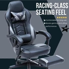 Upgrade your gaming or work experience with a chair that's not only about functionality but also about exceptional comfort and style. Our chair offers a sanctuary for those who spend hours in front of their computer, boasting a footrest and lumbar features that promote relaxation and wellbeing. With a build quality meant to resist the test of time and use, this chair is the steadfast companion you need for every intense gaming battle or productivity marathon. Superior Quality: Crafted with skin-friendly and easy-to-clean faux leather, featuring high resilience thicker sponge for long-lasting comfort. The chair is designed with 360° noiseless wheels to protect your wooden floor. Ergonomic Design: The strong metal frame promotes a comfortable seated position, ensuring maximum comfort during long hours of gaming or work. The thick padded back and seat provide unparalleled comfort, making you feel like you're sitting in a racing car. Easy Assembly: Our package includes everything you need for quick and effortless assembly. The instructions, accompanied by pictures, make it easy to follow and assemble the chair. Enjoy a modern, fashionable, and comfortable racing executive leather chair in no time. Versatile Functionality: This gaming chair is perfect for working, studying, esports, and gaming. It features a 360-degree swivel, 90° to 135° backward movement. The chair is suitable for different desktop heights and comes with a comfortable lumbar pillow for when you need to take a break and relax. Durable Gaming Chairs: Supports up to 275 lbs with a sleek steel frame design, featuring plush foam where you need it most. Sturdy, stylish, and built for intense gaming sessions—because you deserve the best.
