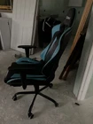 Elevate your gaming or home office experience with the Flash Furniture High-Back Leather Racing Style Ergonomic Swivel Chair. Designed with the gamer in mind, this chair features an adjustable lumbar support, headrest, and height to ensure maximum comfort during long sessions. The sleek blue and black leather/faux leather combination adds a contemporary touch to any space, while the plastic frame and seat material provide a sturdy, yet stylish base. The chair's swivel feature allows for versatile movement, and the tapered leg style ensures it fits perfectly in any room. With a maximum weight recommendation of 250 pounds, this chair is built to accommodate a range of body types. Assembly is required, and the chair measures 26.25"D x 24.75"W x 46.25"H, making it a suitable size for most desks and gaming areas.