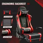 GTRACING gaming chair is your ideal choice for working, studying, and gaming. The GTRACING 099 series with ergonomic design is one of the classical series among our products. With an adjustable headrest and lumbar pillow, it comforts both the cervical and lumbar spine. The racing-style angle adjustor helps you enjoy reclining and rocking at the same time. Seat cushion and chair back full of high-density sponge keep you comfortable after day-long sitting. The ergonomic design and high-quality material make GTRACING chairs perfect for both home and modern offices. Upgrade your gaming office set-up with GTRACING. Ergonomic design: Stable metal frame padded with upholstery seat&chair back and adjustable chair angle would provide your most comfortable posture and keep you relaxing after all day working or gaming. Multiple functions: removable head&lumar pillow could be used on many different occasions; the angle adjustors beside the chair back makes the chair recline within 90~160°, sitting or sleeping; the smooth caters help the chair swivel freely around; the particularly strengthened base can support people for 300lbs for better stability! High-quality material: breathable smooth PU leather, upholstered seat cushion, chair back, and lumbar & headrest pillows offer fantastic support and comfort. Heavy-duty base and nylon smooth-rolling casters create great stability and mobility. Racing style gaming chair; Ergonomic relaxing footrest; Adjustable seat height, head&lumbar pillow, 3D armrests; 90°-160°reclining chair back & 360°swiveling base; Assembled Dimensions: 27.56" D x 27.56"W x 49.21" ~ 53.15" H; MATCHED DESK: GTRACING T-Shaped Gaming Desk with RGB Strips