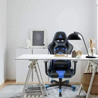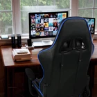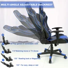 Gaming Chair PU Leather Executive Ergonomic Office Chair Rolling Racing PC Desk Chair Backrest and Seat Height Adjustment Recliner Swivel Rocker with Headrest and Lumbar Pillow (Black/Blue1) ERGONOMIC DESIGN - Adjustable headrest and lumbar pillow can be adjusted to suit your position, protect the health of the cervical and lumbar spine, and relieve fatigue, to help promote a comfortable seated position. The inner cotton provides a more comfortable experience, the breathable leather is skin-friendly and abrasion resistant, keeping you comfy after long hours of game or work, EASY TO INSTALL—This office chair super easy to put together. Follow the steps in our graphical instructions guide, you can install the bar stool within minutes, this desk chair came with all the tools necessary DIMENSIONS-Height adjustment: 53.15"-57.87", Seating area dimension: 19.69"X 14.96" , Back rest size: 35.43"X 17.72", Maximum Weight Capacity: 250 pounds Multi-functional Chair For Home & Office. Adjustable seat height (x-x inches) and recline locking system to lock the back at any angle down to 120 degree make this an ideal seat in the office, study room, bedroom, media room. 360 degree swivel rotation with top quality mute rolling wheels avoid scratching on floor and move smoothly and quietly