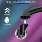 Gaming Chair Wheels - 2.5 inch Heavy Duty Caster Wheels(2200lbs),Mute Rolling Desk Chair Wheels Replacement (Set of 5)-Rubber Office Chair Wheels for Carpet, Wood Floors,Hardwood Floors 🌟[Reliable heavy-duty structure replacement wheels for office chair]: The internal parts of the caster wheels and the entire support frame are made of industrial grade steel, precision ball bearings, and its load-bearing capacity reaches 2200lbs,Great for big guys.The universal size fits most chairs and is highly recommended for use in gaming or office chairs, salon chairs or others 🌟[Color-changing LED lights office furniture casters]: Our office chair wheels are equipped with RGB color-changing LED lights, which are fully activated by sports, which can add uniqueness to your office chairs and gaming chairs. Whenever you try to move the chair on the floor, it will emit colorful lights to make it more attractive.What's wrong with adding a little fun to your mundane life? 🌟[Enjoy easy sliding office chair casters] The gaming chair wheels are wrapped with super-thick transparent polyurethane layer material to reduce the pressure of rolling on the office chair. After the desk chair wheels are installed in place, you will enjoy the 360-degree easy and smooth rolling of the rotating wheel, without squeaking or noise.Play games at home or work in the company without worrying about disturbing others 🌟[Desk chair mat will not be needed anymore]: Our upgraded office furniture casters are different from standard casters, with a newly upgraded super thick and durable polyurethane wrap. These high-quality office chair replacement wheels are suitable for all kinds of floors (wood, hardwood, laminate, vinyl, ceramic tiles), Won't scratch or dent floors 🌟[Risk-free purchase] Your satisfaction is very important, which is why we ensure that each office chair wheel is perfect and perfect for you. We believe you will like our office chair wheels, but if you are not completely satisfied for any reason, our helpful, timely and friendly customer service experts will be there for you at any time. In addition, our products also provide a 30-day free return/exchange service, so if there are any problems, please let us know! Product Description📢📢Sick of seeing the scratches and scuffs your office chair leaves on your favorite floor? Tired of the constant scraping noise when moving the task chair? 📢📢All manufacturers of office and computer chairs today equip them with cheap black plastic wheels. Over time, these will scratch your floors more and more. Sure, you can try floor plastic mats - but they can't save your floors from damage. Small dust particles will fall between the floor and the mat - and still leave your expensive flooring scuffed. 📢📢Try MINEWILL Office Furniture Casters ! Simply replace your old low quality plastic casters with wheels - they're durable and safe for all floors especially wooden. Soft noiseless casters - made from high quality transparent polyurethane – will reliably protect all kinds of floor, including wood and hardwood flooring, laminate, vinyl and tile flooring. The Precision Ball Bearings built into the construction of the wheels and frame will ensure velvet-smooth and noiseless chair movement. SHIPPING - We offer FREE shipping on all orders! - We ship within 3 business days of payment, usually sooner - We use a selection of shipping services such as UPS, FedEx, USPS etc - We only ship to the lower 48 states, no APO/FPO addresses or PO Boxes allowed International buyers – please note: Import duties, taxes, and charges aren't included in the item price or postage cost. These charges are the buyer's responsibility. - Please check with your country's customs office to determine what these additional costs will be prior to bidding or buying. - We have confidence in our products, but if you are not fully satisfied please contact us within 30 days of purchase and you will get full refund. * Order Cancellation Policy ** You can return a product for up to 30 days from the date you purchased it. 1. The seller reserves the right to cancel the special case only due to eBay cancellation fee. 2. The decision of seller is the final. 3. The seller will respond to the cancellation request within 2 business days. Please wait for the result of cancellation. 4. In case the cancellation is not completed by some reasons, the buyer can follow the options below to get the refund. 4.1 The buyer can reject the item when it arrives. 4.2 The buyer can send the item back to the seller within 30 days If the buyer receives item (USA Shipment ONLY). The seller will provide the FREE return label to the buyer when the buyer opens " Return Item" case on eBay by using the reason as "Change my mind" ONLY. 5. When buyer has placed the order. The order will be processed and completed by automatic warehouse system within 5 minutes. In case that buyer sends the cancellation request after 5 minutes of placing the order, the request will be rejected. **Sending direct message to cancel the order is not allowed for every case.* Return Policy For the return case - If buyer would like to return the items for refund or replacement, please CONTACT SELLER to receive the free return label from seller. The refund or replacement will be processed with the tracking number of return label which is provided by seller only. The other ways of return which are not approved by seller will not be processed for the refund or replacement. CUSTOMER SERVICE - We try our best to make sure every customer is completely satisfied. - If there's a problem, feel free to message us! - We're happy to help.