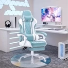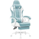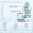 Gaming Chair with Footrest and Massage Lumbar Support Feature: This chair has a maximum height of 52 inches and a cushion width of 19.5 inches,you can sit on this chair even if you are bigger. The soft head pillow and thick lumbar support are also detachable, you can choose whether to install them according to your needs. The maximum adjustable angle of the gaming chair is between 90°and 160 °, and the adjustable height is between 48.5 inches and 52 inches. Specification Color: Light Blue Material: Metal, Plastic, PU leather, sponge, etc Package Dimensions:32.68"(L) x 22.05"(W) x 11.22"(H) Package includes: A gaming chair A tool kit A manual of installation and usage Notice: There may be some differences between photos and items in term of color because the influence of lighting during the shooting or the settings of the computers’ display screen. Comfortable Material: Premium PU Leather with soft fabric can bring you maximum comfort and reduce fatigue caused by work, and also allow you to play in the game.And don’t worry about clean, just wipe it with a soft cloth and it will shine as new. Multi-Function: The maximum adjustable angle of the gaming chair is between 90°and 160 °, and the adjustable height is between 48.5 inches and 52 inches. You can adjust it according to your needs. Intimate and Convenient Design: The soft head pillow and thick lumbar support are also detachable, you can choose whether to install them according to your needs. Unique Design: In addition to the equipment of the general gaming chair, we have also prepared a retractable footrest that allows you to provide a foot support when you lie down and rest, allowing you to experience the comfort of lying on a bed. Product Dimensions: 26 x 26.5 x 48.1 - 51.6 inches (WxDxH); seat width: 19 inches; seat depth: 19.5 inches; arm height: 25 - 28.8 inches.