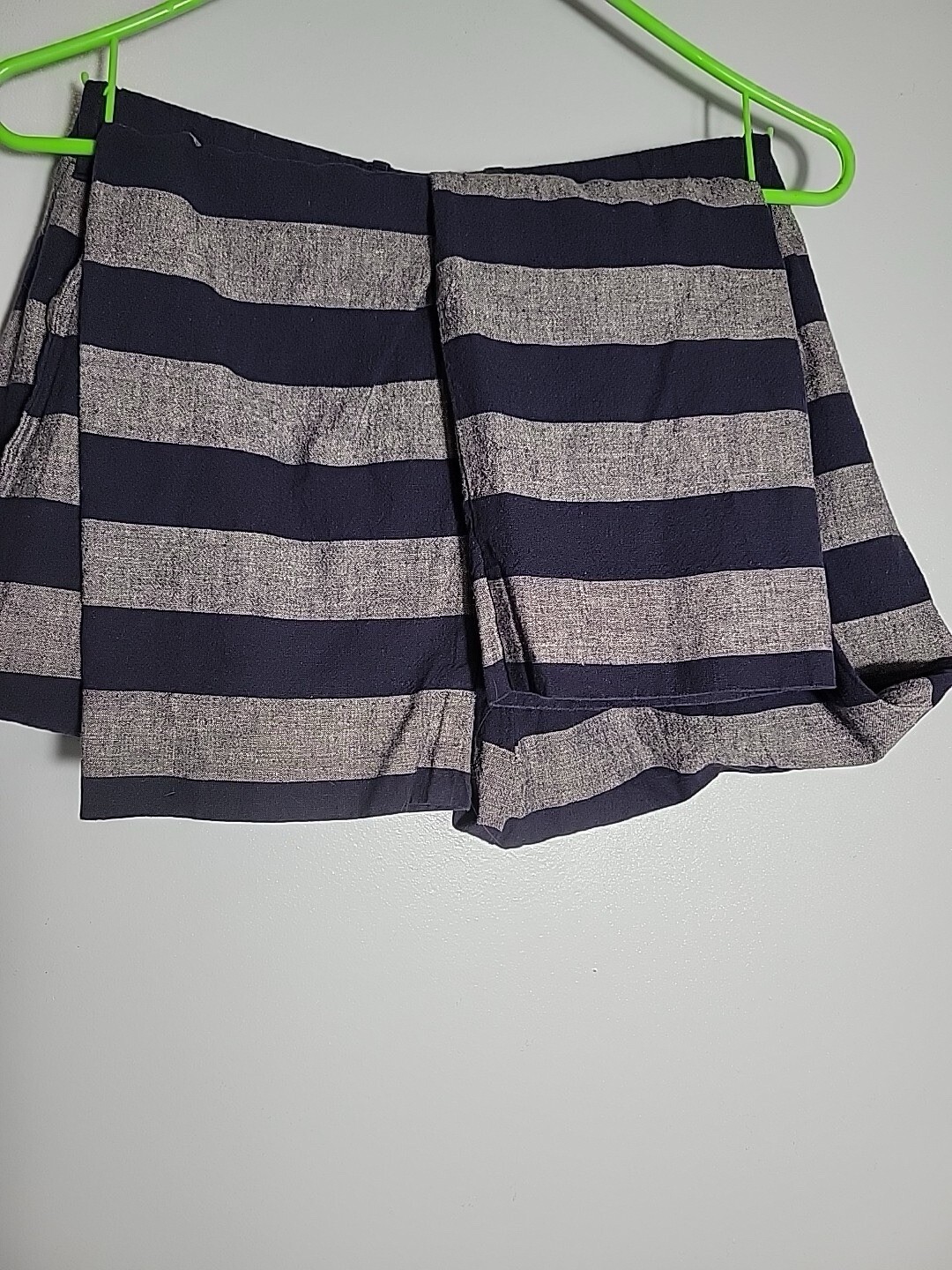 Elevate your casual wardrobe with these stylish Gap women's pants. The blue and gray striped pattern adds a touch of sophistication, while the zip closure and flat front provide a modern look. These pants are made of a comfortable linen/cotton mix fabric and have a mid-rise fit with a tapered leg style. The slimming feature and cropped style make them perfect for a casual occasion, and the waist size of 26 inches and inseam of 27 inches ensure a great fit for size 8 women. Don't miss out on the chance to add these versatile pants to your wardrobe.