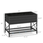 Features: - Elevated design so you don't have to bend down too low, helping to prevent you from straining your body - Made of strong, water-resistant galvanized steel - Storage rack on the bottom for placing garden tools and potted plants - Inner bag made of non-woven fabric provides air permeability - Suitable to place in your yard, patio, balcony, or garden Specification: - Color: Dark Gray - Material: Galvanized Steel - Overall Dimensions: 41.75" L x 21.25" W x 30" H - Interior Planting Dimensions: 41" L x 20.5" W x 10.25" H, 18" H (Bottom to Floor) - Shelf Size: 40.25" L x 20.75" W - Soil Capacity: 37 Gallons - Weight Capacity: 440 lbs. (Planter Box), 22 lbs. (Shelf) Package Includes: - 1 x Raised Planter - 1 x Manual