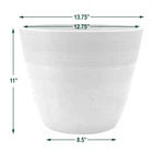 Part of our award-winning PSW Pot Collection, the Etched Pot from Garden Products is made from a mix of recycled plastic, stone , and wood dust. This smart-looking container is ideal for planting combination gardens that provide adequate space for descending roots. The height works well for those plants that will drape and grow over the pot’s edge. Both indoor and outdoor use are popular with this deep pot. For outside use where drainage is likely to be necessary, the bottom of the pot indicates the ideal area for optional drilling. The winning combination of recycled ingredients in the PSW line makes this an attractive, eco-friendly product that is also weather resistant and easy to clean. Available in colors and three sizes, the container features elegant etched ridges around the top portion of the pot. The sturdiness of this etched pot is admirable, and its significant feel and look make it a thoughtful gift for those who enjoy plants and planting. Because it coordinates with other PSW co LIGHTWEIGHT & DURABLE: Answering a gardener’s wish, this PSW item looks heavy but is lightweight and sturdy, which means it’s easy to move and reposition on a patio or in a garden. RECYCLED MATERIALS: A blend of recycled plastic, stone and wood dust is inventively used to create this substantial-feeling etched pot. PSW products are both attractive and eco-friendly. ORIGINAL: The unique appearance of each PSW product is -of-a-kind due to the blending of recycled materials. The slight variations infer an artisan’s touch, making these moderately deep planters appealing and functional. WEATHER RESISTANT: Through snow, sleet, rain or heat – this item can withstand extremes. UV rays won’t fade this item so count on it to be long-lasting. PSW etched pots are for use indoors and outside. DRAINAGE OPTIONAL: Optimal locations for drilling are indicated on the bottom of the pot, enabling this planter to be an ideal choice for enjoyment both indoor and outdoor. VARIETY: Having choices makes a difference when creating a certain look in your garden or sunroom. PSW products are available in a variety of sizes and colors to complement your existing gardenscape or to create a new porch or patio look.