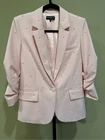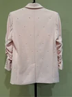 Generation Love Nadia Faux Pearl-Embellished Blazer in Pink Size XS Flaws: Dust spots, thread pulls, pillings and stains are noted. Professional dry cleaning service should be able to remove all dust spots and stains. Please view all images prior to making a purchase This is a sample piece, so it does not have a material or care tag. Cut in a single-breasted silhouette, Generation Love's Nadia blazer is decorated with shirred three-quarter-length sleeves and beaded faux pearl detailing. Notch lapels Three-quarter-length sleeves, button cuffs Chest welt pocket Waist flap pockets Round front hem Back vent Faux pearl trim Single-breasted button-front closure 95% polyester/5% spandex Lining: 95% polyester/5% spandex Dry clean Approximate measurements laying flat: PTP: 17” Length front: 26” Arm: 20” Slight color variation due to lighting
