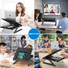 Innovation At Its Finest - Optimized for Travel and Peak Performance in Tight Spaces, The GENIE BOOK laptop stand provides the abundant workspace of the biggest laptop stand riser then transforms into a tiny book size pack-along you can store or take anywhere Adjustable, Ergonomic Relief - 9 Way Height & Angle foldable laptop stand delivers superior line of sight, encouraging the proper posture that promotes relief to your otherwise weary eyes, joints and muscles, even during the longest days Fits Your Laptop - Organizes Your Life: With 2 Onboard cell phone holders, a madness alleviating cord keeper, and ample surface area for any 6” to 17” laptop, this is the portable laptop stand to get if you want plenty of space to hold your MacBook, MacBook Air, Macbook Pro, Microsoft Surface or Alienware gaming investment Rock Solid, Featherlight - Weighs [1.9 lbs], Supports 22: Reinforced ABS and formidable engineering ensures your electronics stay safe and steadily in place, without wobbling, warping or collapsing, so you can stop wasting time making sure it won’t tip, and reinvest that time on better work life balance Stay Cool - Stay Protected: Strategically placed surface holes, combined with silicone non-slip knots increase base airflow, promoting proper heat distribution away from your device and body. Get it, use this portable desk to its fullest for 12 months and absolutely love how it transforms a tiny workspace into maximum productivity