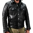 Genuine Lambskin Men Black Trucker Leather Shirt Motorcycle SlimFit Jacket MTJ1a