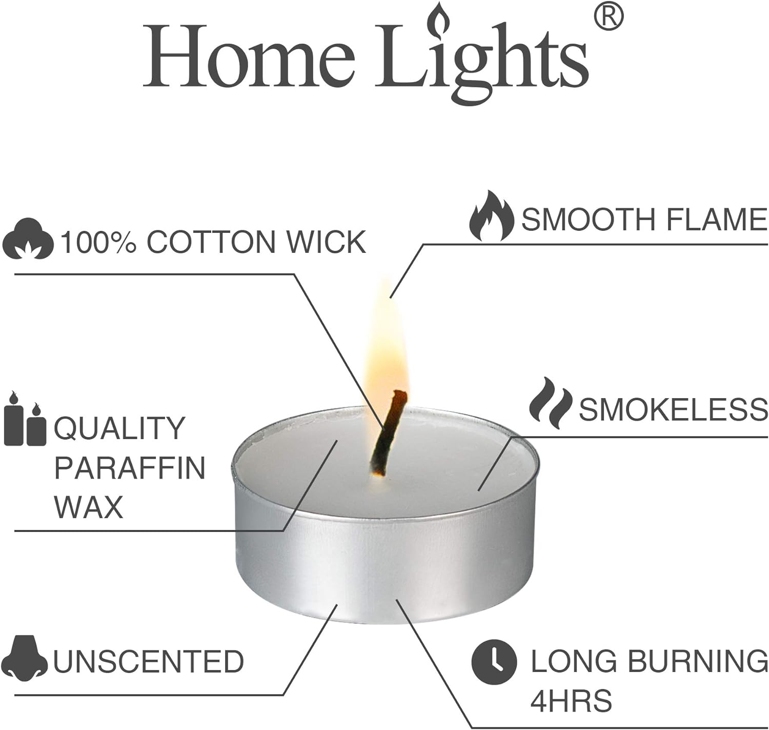 Menu Other Items Feedbacks About Us Contact Us Add To Favorites Tealight Candles - 4 Hours - Giant 100,200,300 Bulk Packs - White Unscented European Votive Smokeless Tea Lights for Shabbat, Weddings, Christmas, Home Decorative- 100 Pack QUALITY THAT MATTERS: Our tealight meditation candles are made using paraffin wax and 100% pure cotton wicks to bring you tea light candles that burn brighter, longer and cleaner making them the perfect addition to your home décor LONG BURN TIME: Thanks to the clean-burning cotton wick, our unscented votive candles can burn continuously up to 4 hours without any smoke or flickers while the metal holder makes sure you don’t have to worry about any wax drippings FOR EVERY OCCASION: Whether you’re decorating your home or getting ready for a romantic night, our unscented tea lights candles have you covered. They’re perfect for Valentine’s Day, Weddings, Anniversaries, Christmas, Pool Parties and much more WARM & WELCOMING AMBIANCE: The decorated small candles burn gently without making any smoke to brighten up any room or venue to create a welcoming, peaceful and warm ambiance to set the right mood for any occasion HANDCRAFTED IN EUROPE: Our long-lasting tealight candles are carefully made and hand-poured in Europe without relying on any harsh chemicals or materials to bring you tea light romantic candles that you can use daily both safely and easily Product Description The video showcases the product in use. The video guides you through product setup. The video compares multiple products. The video shows the product being unpacked. hero-video Merchant Video Tealight Candles HomeLights 4 Hours Tealight Candles Giant 100,200,300 Bulk Packs - White Unscented European Smokeless Tea Lights Tealight Candles HomeLights 6-7 Hours Tealight Candles Giant 100,200,300 Bulk Packs - White Unscented European Smokeless Tea Lights Tealight Candles HomeLights 8 Hours Tealight Candles Giant 100,200,300 Bulk Packs - White Unscented European Smokeless Tea Lights Tealight Candles HomeLights 4-4.5 Hours Tealight Candles Giant 100,200,300 Bulk Packs - White Unscented European Smokeless Tea Lights 1 4 Hours 2 6-7 Hours 3 8 Hours 4 4-4.5 Hours Home Lights Candles Add to Cart Add to Cart Add to Cart Add to Cart Add to Cart Add to Cart Add to Cart Customer Reviews 4.4 out of 5 stars 1,123 4.2 out of 5 stars 5,506 4.7 out of 5 stars 3,489 4.7 out of 5 stars 5,093 4.5 out of 5 stars 566 4.6 out of 5 stars 917 4.6 out of 5 stars 917 Price $23.99 $ 23 . 99 $29.99 $ 29 . 99 $32.99 $ 32 . 99 $19.99 $ 19 . 99 $18.99 $ 18 . 99 $14.99 $ 14 . 99 $24.99 $ 24 . 99 Burn time / hour 100 Hours 130 Hours 6~7 Hours 8 Hours 4-4.5 Hours 30 Hours 60 Hours Number of pack 1 pcs 1 pcs 100/200/300 packs 100/200/300 packs 100/200/300 packs 6 count 6 count Size / inches 21.52oz 33.3oz 1.5x0.75 1.5x0.9 1.5x0.75 2.7x3 2.7x6 Cotton Wick ✔ ✔ ✔ ✔ ✔ ✔ ✔ Fragrance 10 Fragrances 20 Fragrances Unscented Unscented Unscented Unscented Unscented Item Specification Wick Quantity 1 Style Traditional Number of Items 100 Country of Origin Poland Candle Type Tea Light Candle Container Material Metal Batteries Included? No Are Batteries Included No Unit Count 100 Count Batteries Required? No Product Dimensions 7.87"W x 2.32"H Material Paraffin Wax Package Information candle holder Specific Uses For Product Emergency Indoor/Outdoor Usage Indoor Item Weight 2.53 pounds Occasion Valentine,Night,Christmas Special Features 4 Hours Burning Time Tea Light Candles Special Feature 4 Hours Burning Time Tea Light Candles Color 100 Pack Shape Oval Included Components Tea Light Candles (100 Pack) Scent Unscented Size 100 Shipping FREE FREE SHIPPING We are always working hard to ensure your package arrives as soon as possible. Please understand that some factors like weather, high postal traffic, and the performance of shipping companies are outside of our control. We offer free shipping to the lower 48 states. We do not accept P.O. Boxes. Please provide a physical address. If you have a problem or question regarding your transaction please contact us immediately. We will work with you to resolve any problem you may have. Thank you