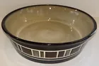 This Gibson serving bowl features an animal print pattern in beige, made of ceramic with a diameter of 9 inches and a height of 2.5 inches. The art pottery production style from the 2010-2019 time period showcases a modern aesthetic, with a production technique of pottery from China. The set includes a single serving bowl, suitable for various dining occasions. Handmade status is unknown, but the overall design and quality make it a beautiful addition to any table setting. kk403