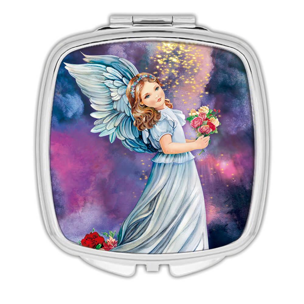 Gift Compact Mirror : Victorian Angel Flowers Vintage Retro Religious Cute