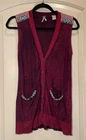 Gimmicks by BKE Maroon button front vest/cardigan w/multicolored beading sz S