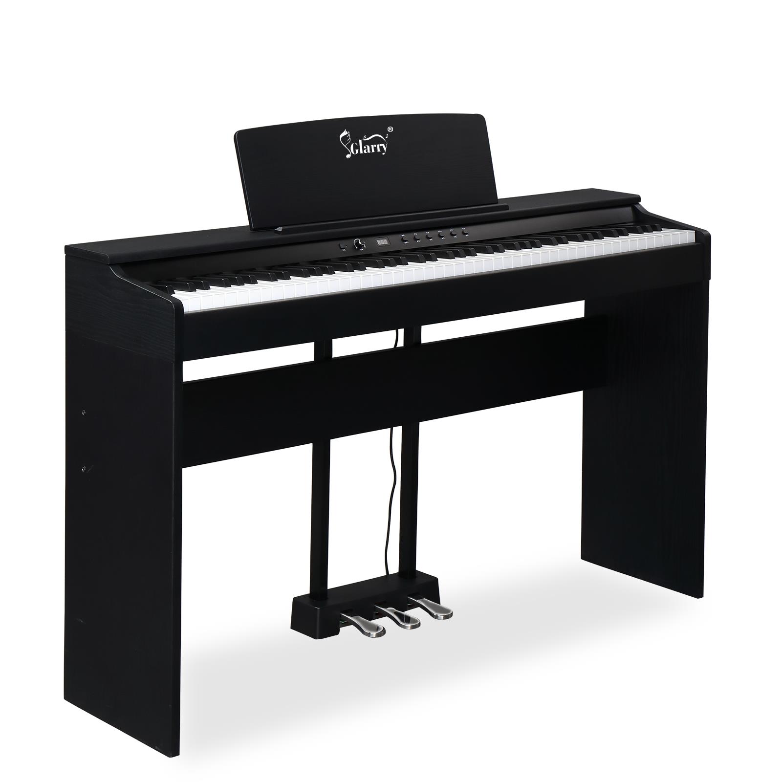 listing template VISIT OUR STORE SIGH UP FOR EMAIL Glarry 88 Keys Full Weighted Keyboards Digital Piano With Cover & Music Stand GDP-104 / GDP-815 GDP-104 GDP-815 GDP-105/8816A Introductions: Glarry 88 Keys Digital Piano Full Weighted Keyboards adopts the High Quality DREAM sound source, digital sampling, has 3 Pedal System (Soft/Sustain/Sostenuto Pedal), which can bring you the most striking sound effects. At the same time we have functions: Metronome, Touch/transpose control, Split/Touch Control, Volume Control, USB, Midi input/output, Record/Play, Audio input/output. Through the connection of Midi input and APP, you can realize the follow-up function, easy for beginners to learn. Our 88 key piano with two Dual Bluetooth, Audio Bluetooth and MIDI Bluetooth. Connect a COMPUTER or tablet with a USB cable for multimedia interaction. After the piano is turned on, Bluetooth will be automatically turned on. The mobile phone can search the MIDI Bluetooth signal of this piano. After the connection, the playing software on the mobile phone can realize the wireless connection with the piano. Features: 1. High Quality DREAM sound source 2. 64 Polyphony/ 20 Demo Songs/ 128 Rhythm/ 128 Timbre 3. Built-in two 10W Stereo Speakers 4. 3 Pedal System: Soft pedal-Soften the tone; Sustain pedal-Continuously increasing lengths of sustained notes, from slight to full; Sostenuto pedal-Press the pedal halfway down to get a partial damper effect 5. Dual Bluetooth, Audio Bluetooth and MIDI Bluetooth. Connect a COMPUTER or tablet with a USB cable for multimedia interaction 6. After the piano is turned on, bluetooth will be automatically turned on. The mobile phone can search the MIDI Bluetooth signal of this piano. After the connection, the playing software on the mobile phone can realize the wireless connection with the piano Specifications: Brand: Glarry Piano Color: Black Piano Dimensions: 49.4 in x 12.79 in x 27.95 in Package Dimensions: 52.36 in x 16.33 in x 11.61 in Package Weight: 58.3 lbs / 26.5kg Model: GDP-104 Keyboard Number of Keys: 88 Key (A1-C9) Action: Full Weighted Action Key Type: Piano-style Metronome: Yes Touch/transpose Control: Yes Split/Touch Control: Yes Sounds Sound Source: High Quality DREAM sound source Polyphony (max): 64-note Demo Songs: 20 Rhythm: 128 Timbre: 128 Connectivity MIDI Connectivity: MIDI over USB Bluetooth: Audio Bluetooth and MIDI Bluetooth USB Connectivity: NO Recording: Yes Headphone Jacks: 1 (1/8" Jack) Pedal Inputs: 3 Storage Type: Internal (64M 16M) Expandability Available: No AUX Input: Yes Line Output: Yes Line Input: Yes Onboard Features Recording/Playback MIDI Sequencer Accompaniment Styles: Comprehensive Chord Accompaniment Preset Songs: 20 Display: Backlight LED Built-in Speakers: Yes (2* 10W) Package Includes: 1 x Digital Piano 1 x Power Adapter 1 x Triple Pedals 1 x Headphone 1 x Headphone Adapter 1 x USB Cable 1 x Android Cable 1 x Piano Cloth 1 x Piano Cover 1 x Keyboard Sticker 1 x Music Clip 1 x Screwdriver, Screw Accessories and Manual Glarry GDP-105/8816A Features: 1. European custom Dream Sound source 2. 64 Polyphony/ 128 Demo Songs/ 128 Rhythm/ 380 Timbre 3. Built-in two 20 W Stereo Speakers 4. 3 Pedal System:Soft pedal-Soften the tone;Sustain pedal-Continuously increasing lengths of sustained notes,from slight to full;Sostenuto pedal-Press the pedal halfway down to get a partial damper effect 5. Dual Bluetooth,Audio Bluetooth and MIDI Bluetooth,Connect a COMPUTER or tablet with a USB cable for multimedia interaction. 6. After the piano is turned on, bluetooth will be automatically turned on. The mobile phone can search the MIDI Bluetooth signal of this piano. After the connection, the playing software on the mobile phone can realize the wireless connection with the piano. 7. Supports Cubase,FI Studio,Logic,Live ect. arrangement software Specifications: Brand:Glarry Piano Color: Black Piano Dimensions:50 in x 12.79 in x 30.51in (without music stand) Piano Dimensions:50 in x 12.79 in x 38.14in (with music stand) Keyboard key Dimensions: Black key width 0.41in, press depth 0.37in; White key width is 0.866in and the press depth is 0.43in Package Dimensions:52.95 in x 16.92 in x 11.81 in Package Weight: 66 lbs/ 30kg Model:GDP-105 Keyboard Number of keys: 88 Key (A1-C9) Action: Full Standard Weighted Action Key Type: Piano-style Metronome:Yes Touch/transpose control: Yes Split/Touch Control: Yes Sounds Sound Source: European custom Dream Sound source Polyphony (max): 64-note Demo Songs:128 Rhythm:128 Timbre:380 Connectivity MIDI Connectivity: MIDI over USB Bluetooth:Audio Bluetooth and MIDI Bluetooth USB MIDI Connectivity: Yes Recording:Yes Headphone Jacks: 1 (1/8" Jack) 3 Pedal inputs: Soft/Sustain/Sostenuto Pedal Storage type: RAM 64KB,FLASH 128M Expandability Available: No AUX Input: Yes Line Output: Yes Line Input: Yes Onboard Features Recording/Playback MIDI Sequencer Accompaniment Styles: Comprehensive Chord Accompaniment Preset Songs: 128 Display: Backlight LED Built-in speakers: Yes (2* 20W) Package Includes: 1 x Digital Piano 1 x Power Adapter 1 x Triple Pedals 1 x Headphone 1 x Headphone Adapters 1 x USB Cable 1 x Android Cable 1 x Piano Cloth 1 x Piano Cover 1 x Keyboard Sticker 1 x Music Clip 1 x Screwdriver , Screw Accessories And Manual You might like this more>> Portable Princess Castle Play House Blue Large Kids Play Tent $23.79 Double Shoe Rack Closet Shelf Storage Organizer $19.49 Oil Painting Easel Sketch Box Portable Folding $57.49 FCH L-Shaped Corner Computer Desk Home Office Desk $109.99 10 Tier Durable Storage Organizer 30 Pair Shoe Tower $18.99 24 Slots PU Leather Wrist Watch Box Display Case Organizer $16.99 Shipping Policy 1. Ship from New Jersey by Standard Int'l Shipping, and only to VERIFIED PAYPAL ADDRESS . 2.International Buyers – Please Note: a. Import duties, taxes and charges are not included in the item price or shipping charges. These charges are the buyer’s responsibility. b. Please check with your country’s cust