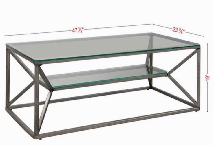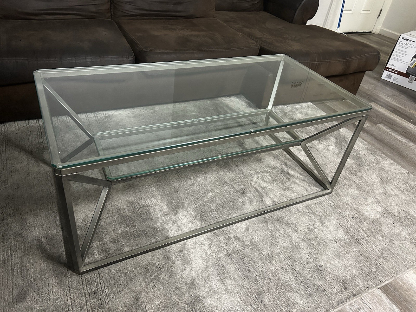 Glass Metal Rectangular Coffee Table Clear Silver With Storage 47.5x23.625x19 in