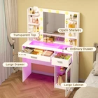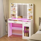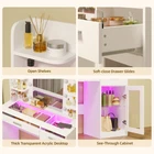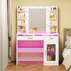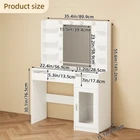 Glass Tabletop Vanity Desk: Unique glass offers a transparent aesthetic, allowing for a clear view of items stored in the drawers and cabinets with clear adjustable shelve. Equipped with built-in LED Lights featuring five color modes, this makeup vanity adds a sophisticated touch to the any room Vanity with Lights Bulb: The makeup vanity desk is equipped with 10 hidden-line designed bulbs. You can adjust the lighting to 3 colors or 3 brightness according to different scenes and makeup needs by pressing the button Powerful Storage Capacity Makeup Vanity: 6-tier open storage shelves, 2 drawers, and 1 large cabinet with shelve can hold all your ornaments, skin care products, and other items. Ample storage capacity of vanity desk perfectly meet your different sorted needs Power Outlet & Easy Assembly: The white vanity desk with a power outlet, which provide power for your hair dryer, curling iron, and other electronic devices at the same time. Bringing more convenience to your daily life. The white makeup vanity comes with tools and numbered accessories, very easy to assemble following the step-by-step instructions Perfect Dimension Excellent Service: The overall size of the vanity mirror with lights desk is 15.7"D x 35.4"W x 55.5"H, the width of the white vanity top is up to 35.4". If you have any questions, please do not hesitate to get in touch with us for a satisfactory answer. Just click "contact seller" to get satisfied solutions, no cumbersome returns On Nov 6, 2024 at 13:17:29 PST, seller added the following information: