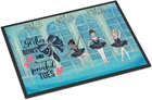 100% Polyester Add color to your door with this full color Artwork Door Mat 100% Polyester Felt Top Rubber-textured underside keeps the mat in a fixed position Durable weather-resistant door mat withstands seasonal changes,use outside all year long Wash with garden hose or power washer Welcome your family and friends with this Artwork mat in full color. This action backed mat with hold up in almost any weather condition. This door mat measures about 24 inches by 36 inches and has a black binding tape to hold it's many layers together. The top layer is a polyester felt that is dyed with the image that you see on the mat. The next couple of layers give the mat stability and the bottom of the mat is rubber that has been stamped to help prevent slipping. To clean this mat, hose it off with a water hose or use a powerwasher. Do not use any cleaner that produces suds.