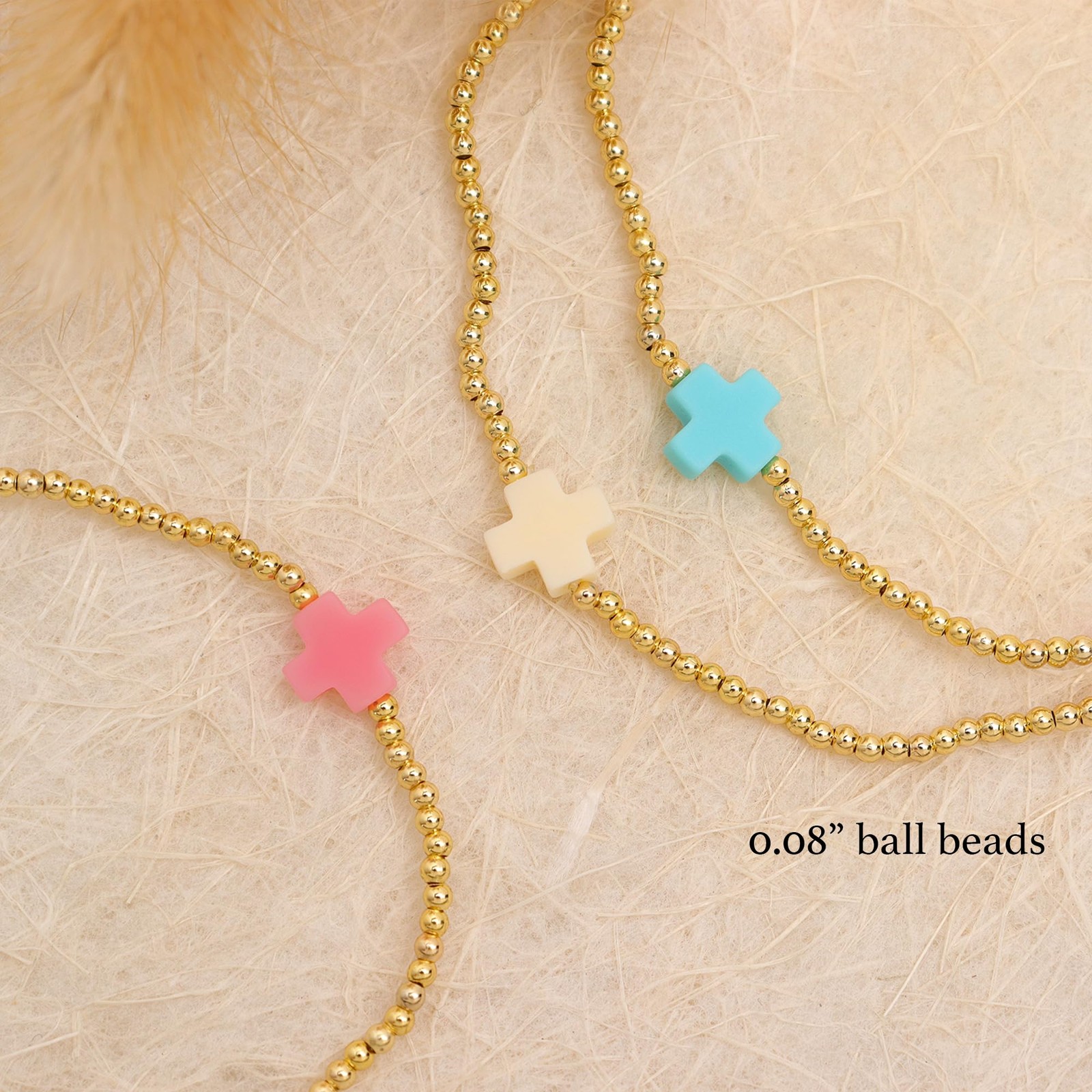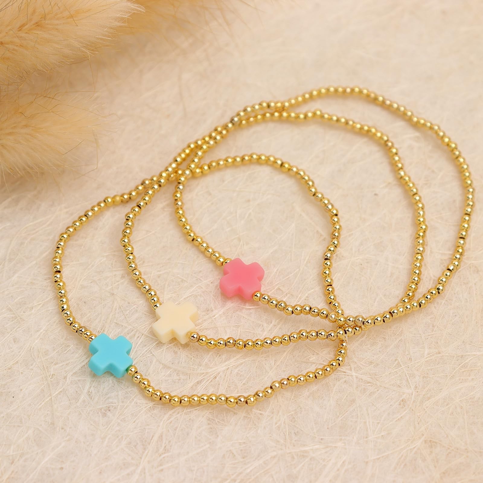 Description Welcome to our vibrant world of jewelry at , Blink x Dream accessory, where exceptional craftsmanship and exquisite designs meet to create stunning pieces that will inspire and captivate. At , we are dedicated to bringing you the high-quality handmade jewelry. From delicately crafted bracelets that adorn your wrist with grace to elegant necklaces that effortlessly elevate any ensemble, and from mesmerizing earrings that frame your face beautifully to the modern touch of stainless steel. Our mission is to empower women to express their individuality and embrace their inner radiance through our curated selection of jewelry. We believe that each piece of jewelry should not only enhance your personal style but also reflect your vibrant spirit, we have just what you need to embrace your carefree spirit. Shopping at is not just about acquiring jewelry; it's an experience of discovery, self-expression, and celebration. Our store is designed to provide a welcoming and enjoyable atmosphere, where you can explore our diverse range of designs and find the perfect piece that speaks to your heart. We invite you to step into our world of Blink x Dream accessory, where the beauty of handmade craftsmanship meets the playfulness of cheerful colors and the sophistication of cool elegance. Product Features: Trendy Gold beaded cross bracelet, 14k gold plated brass stretch, featuring colorful cross charm. Dainty Boho style, versatile, everyday, perfect for birthday, graduation, anniversary, party, Thanksgiving, Christmas, Halloween, Valentine’s day, etc. Hypoallergenic, lead free, nickel free, non-tarnished, durable, comfortable to wear, complement any outfit effortlessly. Great for gifting your co-workers, best friends, bff, sister, gf, lover, wife, partner, mother, daughters, etc. Proper storage and regular cleaning can help the jewelry stay shiny, and long-lasting.