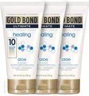 Product Description Gold Bond Ultimate Healing Hand and Body Lotions Fresh Aloe 5.5oz (3 Pack) This daily moisturizer has a fresh, clean scent and provides long lasting moisture for skin that looks and feels noticeably healthier. This lotion has seven intensive moisturizers with vitamins A, C and E to help stop dry skin before it starts. The Gold Bond Healing formula is non-greasy, hypoallergenic, and dermatologist-tested for everyday use. Stock up on large bottles of Gold Bond Healing Lotion so you always have soothing dry skin relief on hand. Your skin is a champion. One that never settles for silver. Gold Bond is high performance skin care for real life so you can be your best while keeping your skin at its best. SEVEN INTENSIVE MOISTURIZERS: Gold Bond Lotion moisturizes and hydrates with aloe and three nourishing vitamins HEALTHIER-LOOKING SKIN: Gold Bond Healing Lotion penetrates 10 surface layers of skin deep for nourished and healthy-looking skin DERMATOLOGIST-TESTED: This Gold Bond Lotion has been tested by dermatologists and is hypoallergenic FRESH CLEAN SCENT: This non-greasy body lotion is quick-absorbing and has a fresh clean scent Perfect for daily use. Ingredients Water, Glycerin, Dimethicone, Petrolatum, Jojoba Esters, Cetyl Alcohol, Aloe Barbadensis Leaf Juice, Stearyl Alcohol, Distearyldimonium Chloride, Cetearyl Alcohol, Steareth-2, Steareth-21, Propylene Glycol, Chamomilla Recutita (Matricaria) Flower Extract, Polysorbate 60, Stearamidopropyl Pg-Dimonium Chloride Phosphate, Methyl Gluceth-20, Tocopheryl Acetate, Magnesium Ascorbyl Phosphate, Hydrolyzed Collagen, Hydrolyzed Elastin, Retinyl Palmitate, Hydrolyzed Jojoba Esters, Glyceryl Stearate, EDTA, Fragrance, Potassium Hydroxide, Diazolidinyl Urea Methylparaben (309-151)