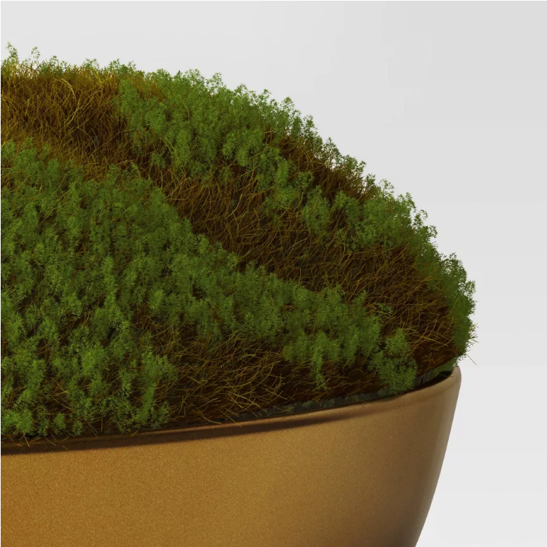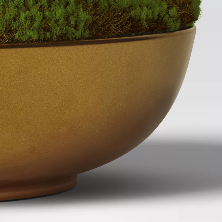 Decorative faux-moss accent piece Features faux moss Oval-shaped ceramic bowl in golden hue Suitable for indoor use only