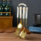 Kitchen utensils set——1 utensils rotating holder, 1 spatula, 1 skimmer slotted spoon, 1 slotted spatula tunner, 1 large spoon, 1 pasta spoon, 1 ladle. the all metal cooking utensil is safe to use for any type of food.forged in one-piece with no welding or stress points, sturdy and durable Mirror polish finish——it creates a dazzling appearance on this set of green cooking utensils set. don’t hide them. display their magnificence with this high quality utensils holder. this set is polish with mirror finish instead of other brand with dull polish finish. raise the standard in your kitchen by adding the unique effects stainless steel mirror finish polished utensil set to your tools. once you use this incredible set you won’t want to use anything else Excellent shape and design——each spatula and spoon is dishwasher safe. 304 stainless steel thickened utensils holder for countertops, 360 degrees design - utensils will be kept organized, collected, and within reach.this utensils set is made of high quality stainless steel, strong rust resistant, lead free. this utensils set is non-magnetic instead of other brand catchs magnetic. this material is food grade, healthy for daily use. the royal gold utensils are perfect for wedding, parties Gold kitchen utensils set——from novice to professional cooks, green kitchen utensils setwith holder would be a welcome addition to any kitchen and a great gift for birthdays, holidays, housewarming and more; perfect complement for gold kitchen decor Customer satisfaction guarantee——purchase this gold utensils set with peace of mind; feel free to contact our friendly support team for a hassle-free replacement if you are not 100% satisfied Exterminate flying insects