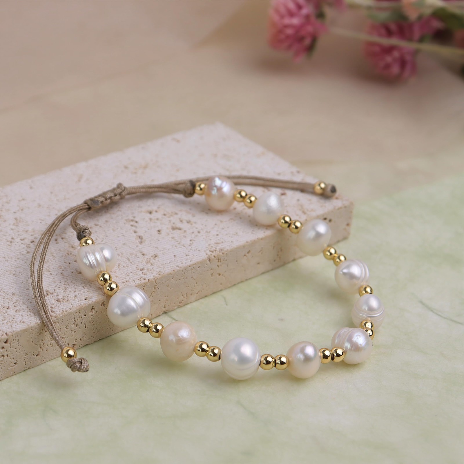 Description Welcome to , where we bring you the coolest jewelry made with love! Founded by Agria and Jun, our family business is all about spreading faith, joy, energy, and hope to our cherished customers.At , we specialize in offering top-quality stainless steel and handmade jewelry that will capture your attention. From eye-catching necklaces and bracelets to elegant earrings and rings, our collection has something for everyone. Thanks to our advanced gold plating technology, we offer daily jewelry that is not only stylish but also affordable. We're constantly exploring new possibilities and have sourced high-quality cubic zirconia supplies that rival the brilliance of expensive diamonds. Additionally, we collaborate with reputable freshwater pearl suppliers and Italy's finest 925 sterling silver suppliers, ensuring that our pieces are exquisite in every way. We also work with skilled handmade workers from countries like China, Japan, India, Indonesia, Mexico, Philippines and more.Our jewelry isn't just fashionable, it's also perfect for holiday gifting. Many of our designs are created with family in mind, making them thoughtful gifts for grandmothers, mothers, partners, daughters, and sons.At , your satisfaction is our utmost priority. We value your feedback and are always here to lend an ear. Whether you have questions, need assistance, or simply want to share your thoughts, don't hesitate to reach out. Your happiness drives us to continuously improve and provide exceptional service.Discover the enchantment of and adorn yourself with jewelry that reflects your unique style and personality. Join our community of passionate jewelry lovers and experience the love that goes into every piece we create. Product Features: Cute handmade beaded bracelet, with a strand of irregular baroque shape freshwater pearl, stunning and shiny, add a touch of charm to your daily look. Sliding knot design, handcrafted bracelets anklet circumference around 6", adjustable to 11", perfect for daily wearing, holiday party, special formal events, a graceful accessory to elevate your style. Trendy statement bracelet, with tiny gold accents and freshwater pearls, perfect for stacking, and easy to match. Charming unisex bracelets, great for gifting your best friends, girlfriend, partner, wife, mother, and daughters on special occasions like birthdays, anniversaries, easter, Mother's day, spring festivial, etc. Elegant fashion jewelry that is worth cherishing. Regular cleaning will help maintaining its shine and longevity.