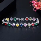 Gold Plated CZ Multicolored Women Round Tennis Bracelet Wristband Chain Jewelry Specifications: 1. Condition: New 2. Material : Cubic Zirconia 3. Bracelet Length :18 cm + 2.4 cm extended clasp Features: 1. Cubic Zirconia High Quality Material - Diamond-like Brilliance , Prong Setting and CZ Stone are stable. 2. It will be an Ideal Gift for Your Girlfriend, Wife, Fiancee, Daughter, Mother, Your Special Someone, or just Yourself. 3. Wearing Occasion: Daily wear, Shopping , Anniversary , Party , Wedding , Christmas , New Year , Valentine's Day ,etc. Package Includes: 1Pc Bracelet Payment Delivery details Terms of sales About us Contact us Payment 1. We only accept payment by Paypal 2. We request you pay within 5 days of the first auction close. Failure to do so may cause our automated dispute system to file disputes for unpaid items Delivery details We only send items to the registered eBay address.Items will be shipped within 2 business days from the date payment is received (not include public holiday and weekend) . As per eBay regulations, import duties, taxes, and customs charges are the buyer's responsibility. Please check with your country's customs office to determine what these additional costs may be prior to bidding or buying. Terms of sales After-Sale Please contact us to request a return/replace/refund authorization.It will be best if you use ebay message to contact me. 1, Return and replacement request is available only the requests within 30 days after parcel received. 2, Returning the item as the same condition as received. Situation and solution Defectives ---Please contact us and provide a photo of the defective part. After situation confirmed,we will offer you refund/return/replacement according to the situation Not as Described ---Please contact us and provide a photo of the wrong part. After situation confirmed,we will offer you refund/return/replacement according to the situation Not Received ---Please undersatnding shipping on the way was out of our control ,because of the busy shipping season,holidays,bad weather or force majeure etc. It may be delay for days. But if it took too much time and not deliveried, Please message me, I will offer you solution for it. About us Working time: Chinese time(Eastern eight zones):Monday to Friday ,9:00 am to 6:00 pm. We do not work on chinese legal holiday. Message reply: We will reply all messages within 24 hours of business time. Contact us Please contact us via ebay message, it was the best way for both you and us to solve problems. Any questions or anything you need, please feel free to contact us.