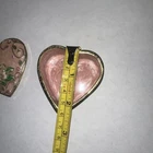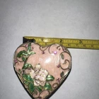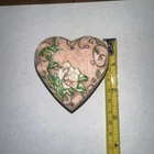 This vintage gold tone heart-shaped trinket box with a 3-D rose flower design is a charming and decorative piece perfect for any room in your home. Made of porcelain with a glossy finish, this Victorian-style trinket box features a hinged lid for easy access to your keepsakes. The shabby chic design with a floral pattern and pink color adds a touch of elegance, making it a unique and stylish addition to your collection of decorative boxes. Hand wash only to maintain its beauty and charm for years to come.