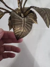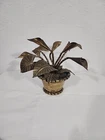 This is a medium-sized gold-tone metal sculpture of Cala Lily flowers by Llamas. The abstract art piece is 8 inches in length, height, and width, with a free-standing mounting. The sculpture features a stylized interpretation of Cala Lily flowers in an Art Deco style that have movement with touch or a breeze. Add to your all-season porch or sitting area, perfect for floral and garden-themed decor.