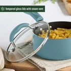 Goodful Ceramic Nonstick Pots and 12-Piece Cookware Set, Turquoise Product Details Material: Aluminum,Ceramic,Tempered Glass,Stainless Steel Color: Turquoise Brand: Goodful Size: 12-Piece Nonstick Cookware Set Handle Material: Comfort Grip Handle, Comfort Grip Handle Is Dishwasher Safe: Yes Material Type Free: PFOA Free, PTFE Free, PFAS Free Compatibility Options: Dishwasher Safe Number of Pieces: 12 Closure Material: Tempered Glass Included Components: 12-Piece Cookware Set Is Oven Safe: No With Lid: Yes Manufacturer: Epoca Special Feature: Gas Stovetop Compatible, Electric Stovetop Compatible Package Dimensions: 25.75 x 15.38 x 8.13 inches Item Weight: 17.67 pounds Country of Origin: China Item model number: GF12097-AZ SET INCLUDES: 8” fry pan, 10” fry pan, 2 quart saucepan with lid, 5 quart Dutch oven with lid, 4 quart deep sauté pan with lid, 10” square griddle pan and bamboo tools. PROFESSIONAL RESULTS: Expect even heat and reliable results thanks to its heavy gauge construction and spiral heat grooves. HEALTH-MINDED COOKING: Made without PFOA, PTFE or PFAS. This clean ceramic nonstick coating allows food to effortlessly slide out of the pan eliminating the need for unhealthy oils or butter. QUALITY UPGRADES: Compatible with all stove tops including induction. Comfort grip handles ensure a safe and secure grip while the tempered glass lids allow you to monitor food as it cooks. DISHWASHER SAFE: This cookware set is as easy to clean as it is to use. The entire collection is dishwasher safe for fast and easy clean-up. Expect professional quality and professional results with the Goodful Premium Ceramic Nonstick Cookware Set. The heavy-gauge aluminum construction and spiral base allow for even heat distribution and retention. The ceramic nonstick coating provides effortless food release and makes clean-up a breeze. Made without PFOA, PTFE or PFAS, this clean ceramic coating allows food to effortlessly slide out of the pan eliminating the need for unhealthy oils or comfort grip handles allow for a safe and secure grip while the tempered glass lids allow you to monitor food as it cooks. Best of all, it's dishwasher safe so you can spend less time cleaning and more time enjoying your culinary creations with family and friends.