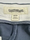 Elevate your wardrobe with these stylish and functional chino pants from Goodthreads. The navy color and solid pattern make them a versatile addition to any outfit, while the slim-fit and flat front design give them a modern, city-preppy vibe. These pants feature a zip and button closure, as well as slash pockets for added convenience. The fabric type is canvas, consisting of 97% cotton and 3% elastane, which provides both comfort and stretch. They are perfect for the transitional seasons of summer, fall, and spring, and can be dressed up or down for casual or workwear occasions.