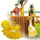 Luau Goose Outfit Porch Goose Clothes Summer Luau Goose Clothing For 23'' Goose Outdoor Decor Features: Reliable Materials: Made from high-quality cloth known for its sturdy construction, this goose costume effectively resists regular wear and tear from factors such as sun, wind, and rain; This makes it an ideal choice for outdoor decoration that will stand the test of time and weather Beautiful and Stylish: The porch goose costume features a delightful design with bright green and yellow colors that will attract attention and visually appealing details to your or garden; Dressing up your goose can transform an ordinary installation into an eye-catching garden centerpiece Ideal Size for Standard Geese: Our goose costume is designed to fit most standard geese; Our costume is designed to dress up approximately 23 Inch goose, stylish and ideal fit, enhances the charm of your outdoor goose statue; expect a mesmerizing and pleasing effect that cannot be ignored Versatile Garden Decoration: These garden goose costumes are not limited to your geese; they can be used as decorations and can be applied to various occasions such as garden parties, children's activities, or just to make your outdoor space more interesting Convenient Package Includes: Our 23" Goose Costume Set includes 1 Bikini (Includes 1 Hat, 1 Bikini, 1 Skirt); Please note that while this costume comes with many accessories, the goose itself is not included, you can apply it to an existing statue or find a statue that suits your preferences Product Description: Luau Goose Outfit Porch Goose Clothes Summer Luau Goose Clothing for 23'' Goose Outdoor Decor (Bikini) Material: cloth Color: as the picture shows, (Due to the difference between different monitors, the picture may have slight color difference. please make sure you do not mind before ordering, Thank you!) Package weight: 160g Package size: 30x20x2cm,(Please allow 1-3mm error due to manual measurement. please make sure you do not mind before ordering.) Note: A complimentary 10ml Bubble Water Supplement