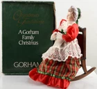 A Gorham Family Christmas #G7004 Grandmother with Rocker Doll in Excellent Vintage Condition. Made in 1986 This Doll is Sitting on a Rocking Chair. Grandma is Approx. 10" Tall and When Sitting in Her Rocking Chair She is Approx. 9" Tall. Part of a Collection" A Gorham Family Christmas".