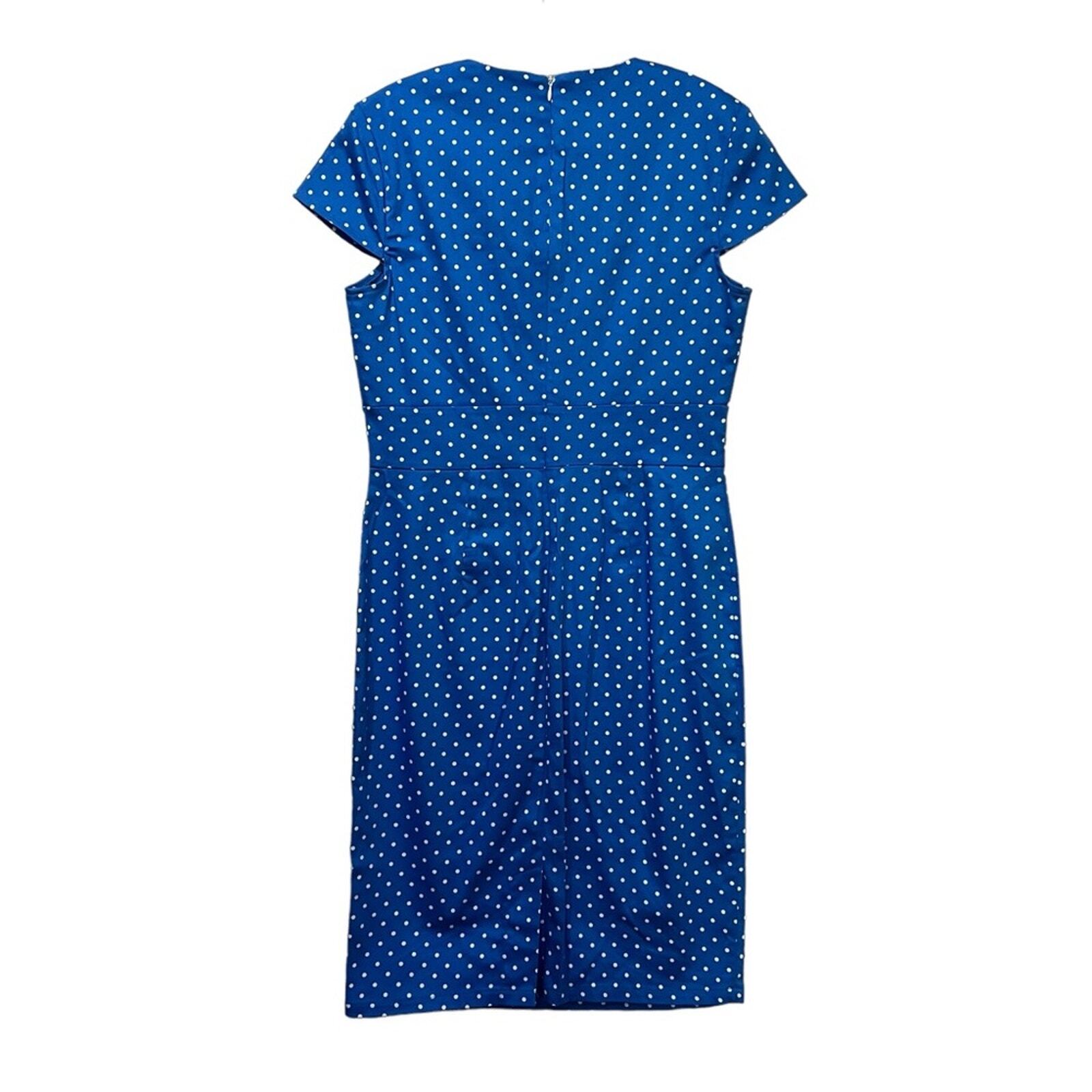 Grace Karin Size Medium Blue White Polka Dot Print Wiggle Rockabilly Retro Dress Zip back Like new From smoke free home Approx measurements 39” long 17” pit to pit Mini Goth 60’s 70’s Form fitting Vintage Pinup Bettie page