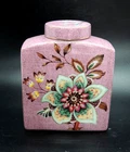 Grace Teaware Ceramic Square Tea Caddy Tea Box Tea Jar with Lid Mauve Floral -Measures about 4 1/2" tall by about 3 3/4" wide -Pre-owned in very good condition with no chips or cracks, may show slight signs of shelf ware, beautiful color and design -Please examine all photos, they are part of the description -Comes from a smoke free home -If you have any questions, please ask