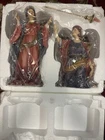 Figurines are in very good condition. No chips, cracks, and repairs identified please reference pictures. This exquisite set of two porcelain angels is a must-have for any collector or lover of religious figurines. The hand-painted angels are part of the Grandeur Noel collection and feature intricate details and vibrant colors. Measuring between 7.75" and 10", they are perfect for displaying on a shelf or in a case. The angels are designed with an asymmetrical shape and feature a traditional style that is suitable for all occasions. They are made from high-quality porcelain and are part of the 21st Century era. The set includes two figurines and is a perfect addition to any collection.